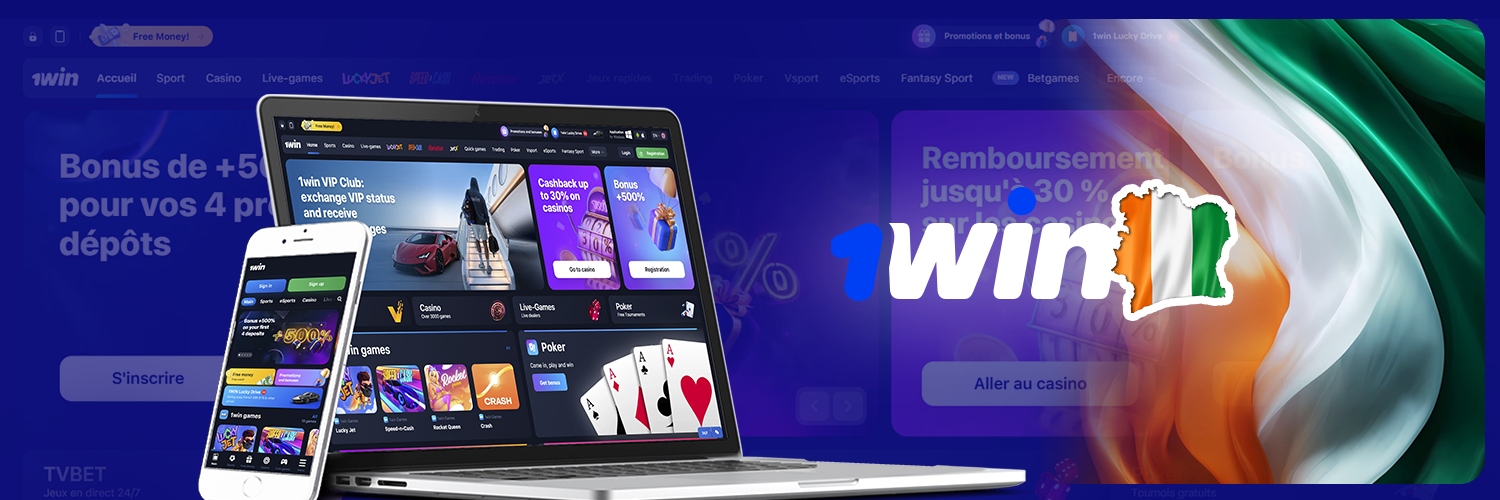 1win est une plateforme complète de paris sportifs et de casino en ligne disponible en Côte d’Ivoire. Elle met l’accent sur une inscription simple, des dépôts/retraits rapides en XOF (franc CFA), un bonus de bienvenue important et une application mobile adaptée aux usages locaux.